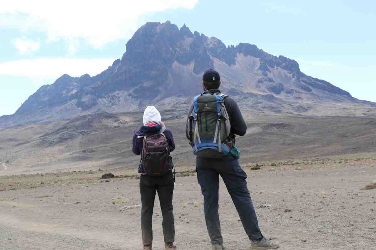 I wake up on Day 4 feeling loads better. Vomiting and sleeping has that affect. I took a Diamox altitude sickness pill after vomiting before going to sleep, and decided I will take them until I get to a lower elevation than Mawenzi Tarn. Medicine works so I don’t know why I was fighting it trying to tough it out. We eat a hearty breakfast and begin our day with the usual 8am departure time. We hike to Kibo Camp (elevation: 4,720 meters; 15,486 feet), which serves as the base camp of Kibo, stopping to eat our packed lunches along the way on the part of the mountain called “The Saddle”. It’s a downhill then flat then uphill hike, and we see many porters going off to the right. Turns out they were going to the closest water source, which was still far from camp. Each camp has a clean running water source where porters get water. Then its boiled before it is used to wash, cook, or drink. All the water tasted fine to me. In the gunpoint mugging incident, I had my small day backpack stolen along with my 1.5 liter water bladder that was inside it. Luckily, our neighbor Monica (and now our current roommate since we moved out of our place a month early to follow up getting our security deposit back (which we did by the way)) was taking a girls trip and passing through New York, so when she met up for dinner at my family’s house, my mom gave her a few things to bring back to Kenya for me. Huge props to my mom and dad who went to REI on a moment’s notice for me. We decided last minute we were going to do this Kilimanjaro trip, and it was too late to Amazon Prime because of the timing of my family overlapping with Monica. They got me 4 new pairs of hiking socks, and, most notably, a 3 liter Osprey bladder that is so well designed that Bill couldn’t stop raving about its genius every single day. He used that bladder because A) he liked it so much and B) it is heavier to carry 3 liters than 2 liters and I used his 2 liter one. It made me really happy that this water bladder made him so happy. Also Bill makes me happy and this trip was no exception. He would carry my things in his bag, and despite him being able to do the hikes in like half the time it takes me, he always walked behind me or next to me and if he did get a little ahead, he would turn around and wait for me making sure I was ok. One thing I wanted from this hike was for Bill to enjoy himself, and I knew I would feel guilty being slow on the uphills making it less fun for him. But he was encouraging and helpful so I think I’ll keep him forever.
