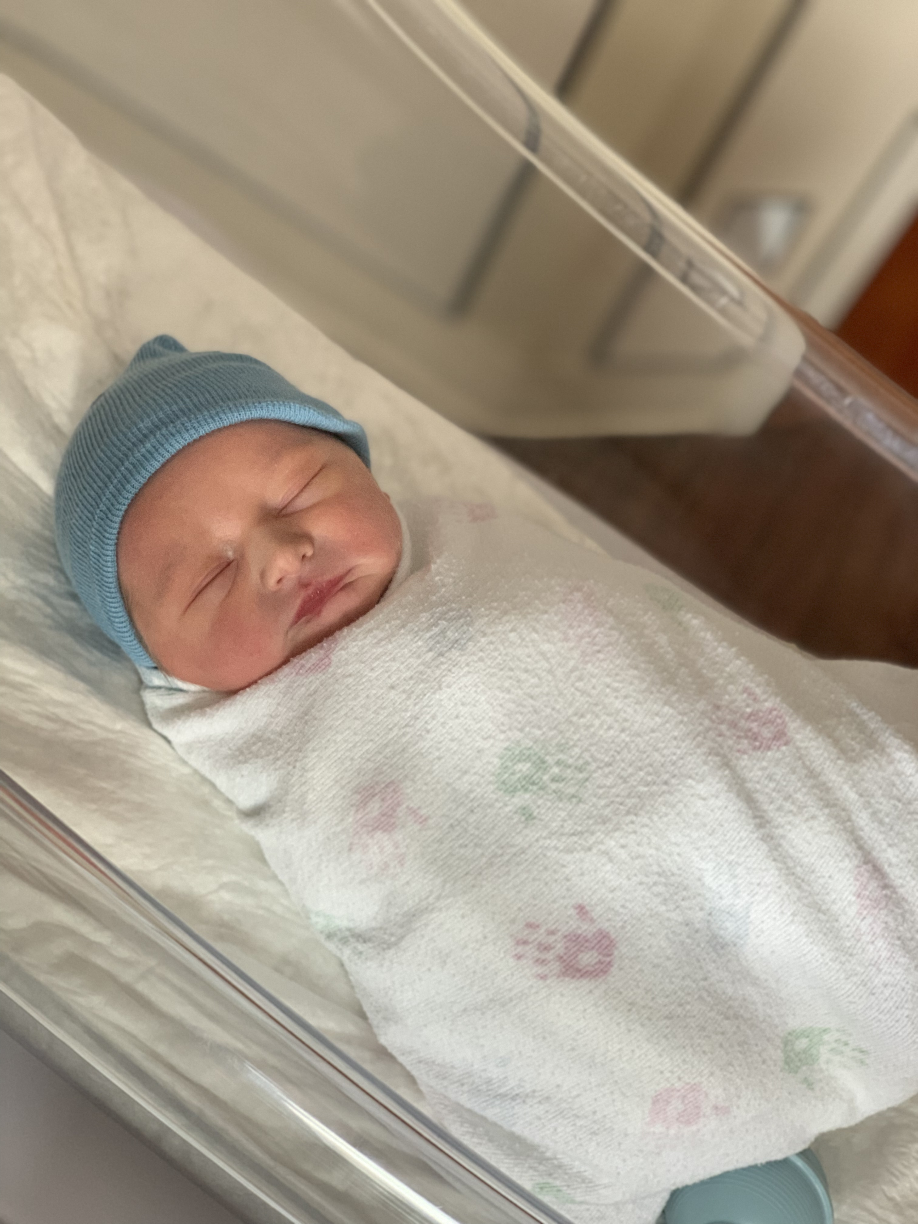 It’s time for another cervix check. A second year resident named Connie does the exam, and she gasps, looks up at the nurse who was at the computer doing monitoring stuff and says “Call the head nurse. I feel a hand.” In a matter of 2 to 5 seconds, the room went from 2 people (other than me and Bill) to 12. Apparently, it isn’t good if your baby is trying to high-five from within. Zelda’s hand was above their head in front, a position not safe for birth. One of the many people who came running into the room was the head nurse on the floor named Nikki. I met Nikki once before when I went with my sister-in-law to hang out with some of her friends outside one of their garages. There was a small group of 5 of us, and it was a lovely socially distant mom hangout soon after we moved here from California. When conversation turned to my pregnancy and hospital of choice, Nikki told me she’s a nurse in Labor and Delivery at Northwestern. I secretly hoped she would be there on the day I was delivering because I thought she was really cool, and I want to be her friend. And now we got to hang out again while my baby’s hand was hanging out of my vagina! We chit-chatted a bit while the fourth year resident tried to push Zelda’s hand back down. Nikki tells me we may have to have a C-Section ASAP. I saw how worried Bill looked, from the news of the potential procedure and just the sea of doctors that rushed into the room, so I felt like I had to stay calm. Also, I was trying to look super cool in front of a hopefully future friend Nikki. But moments later, the fourth year resident said she was able to push Zelda’s hand down and we are out of the danger zone and back on track in a good position. She was like, “that never happens!” I felt lucky. And the room cleared just as fast as filled. Phew.