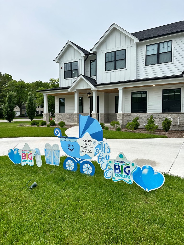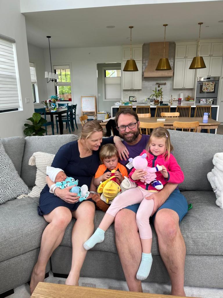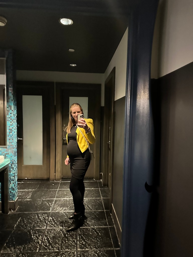 The last two trimesters were thankfully much less medically exciting than the start and early pregnancy. Two days before Halloween of 2023 we moved into our dream home (that I (humble brag) designed) and the day before that we had a pizza party with our family in the finished but completely empty house. They have all seen the house before, but now that it was ready for move-in, I wanted to give everyone a tour, with a surprise. In the last bedroom upstairs, we put Kellenâs ultrasound pictures up on the wall, and that is how we announced the exciting news to our family! Kellenâs in-utero name was Zscott, and our kids loved talking about our future with Baby Zscott! Knowing this is almost certainly probably definitely for sure my last pregnancy, I had a few moments of mourning that, or rather appreciating that, in real time. I wished I took more pictures of myself documenting my expanding middle, but I was busy with two other kids both demanding 100% of my attention.