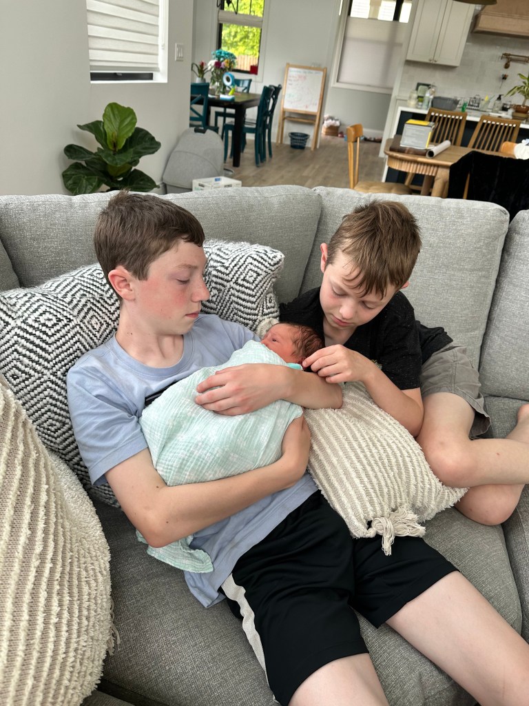We are discharged and made it home for lunch. The HOA pool across the street from our house opened for the season as it was Memorial Day weekend, and so Bill and the two big kids went swimming. I was so happy that even though we have a third kid now, we didnât miss a beat living life to the fullest and he fits in just so perfectly. And it is funny that we call Kalliszta and Bence the Big Kids, when the oldest isnât even in Kindergarten yet (next school year!!)